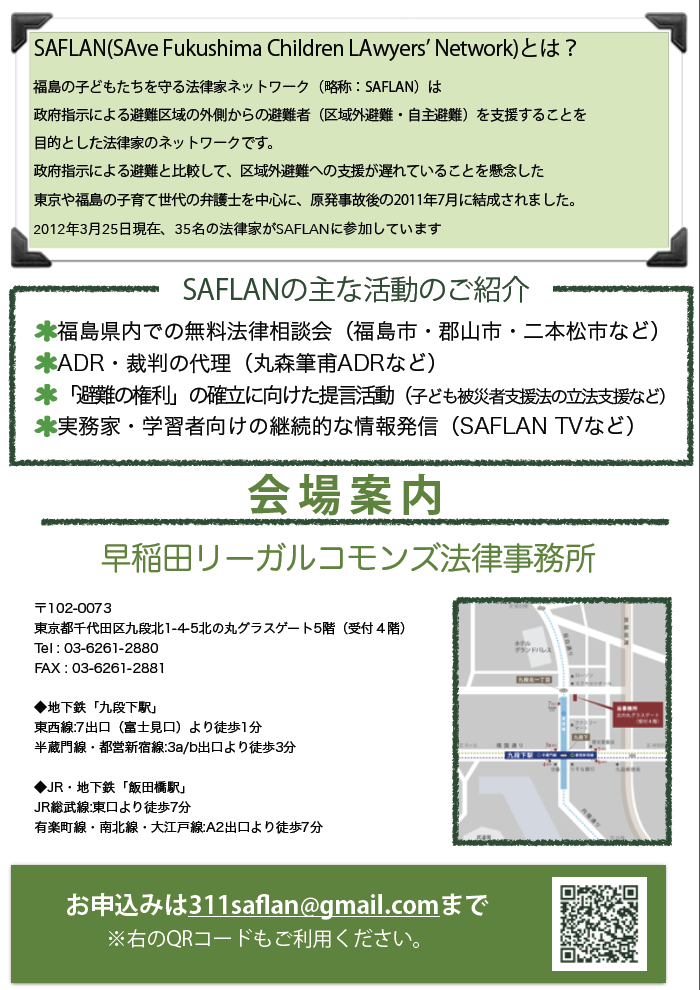 私どもSAFLAN(福島の子供たちを守る法律家ネットワーク)とは、